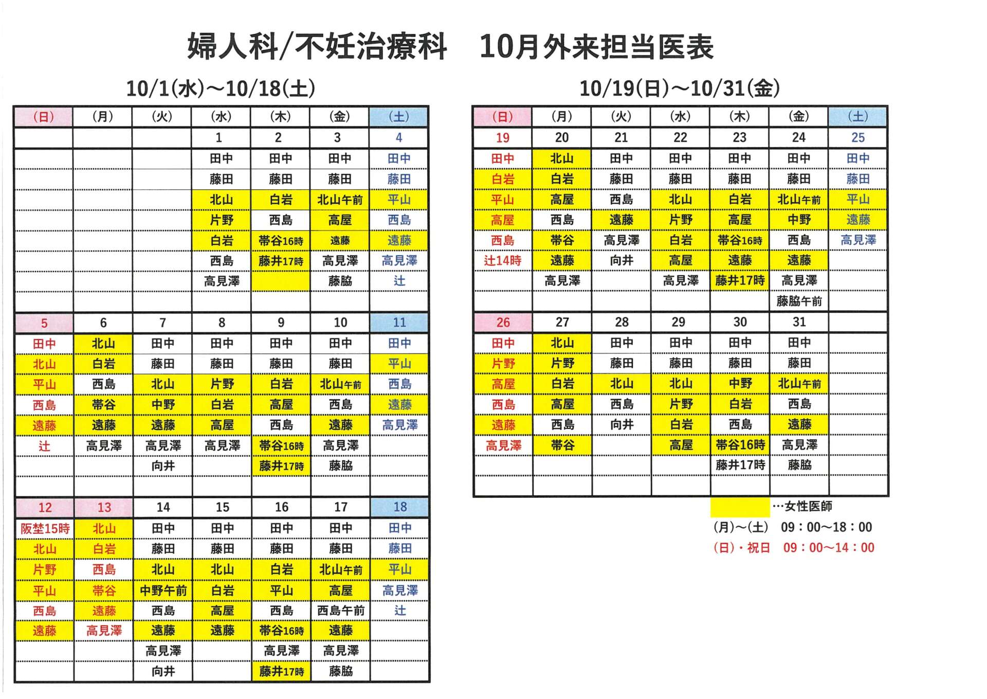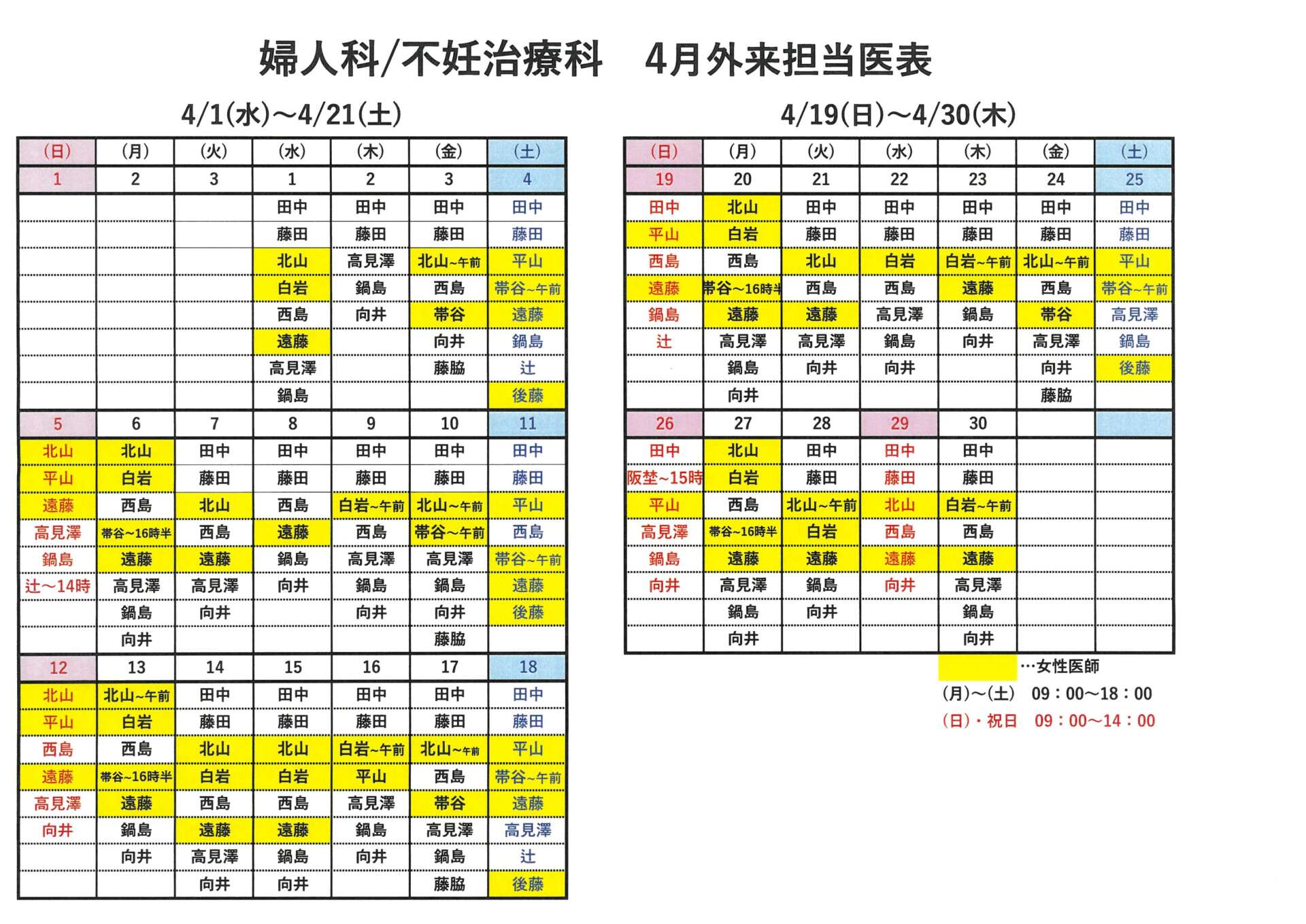 ※予告なく医師シフトの変更のあるときがあります。詳細はお問合せください。